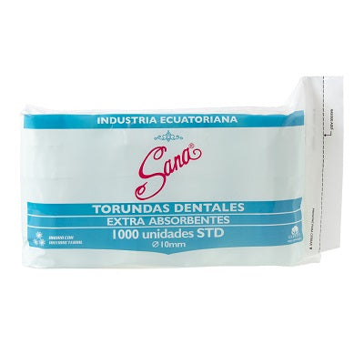 El Algodón Hidrófilo en Torundas Dentales x 1000 de Sana es un insumo médico esencial para clínicas, consultorios dentales y uso profesional. Fabricado con algodón 100% puro, está diseñado para garantizar suavidad, alta absorción y seguridad en procedimientos orales y médicos.