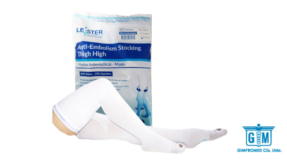 Medias antiembólicas hasta el muslo diseñadas para proporcionar una compresión gradual desde el tobillo hasta la parte superior de la pierna.