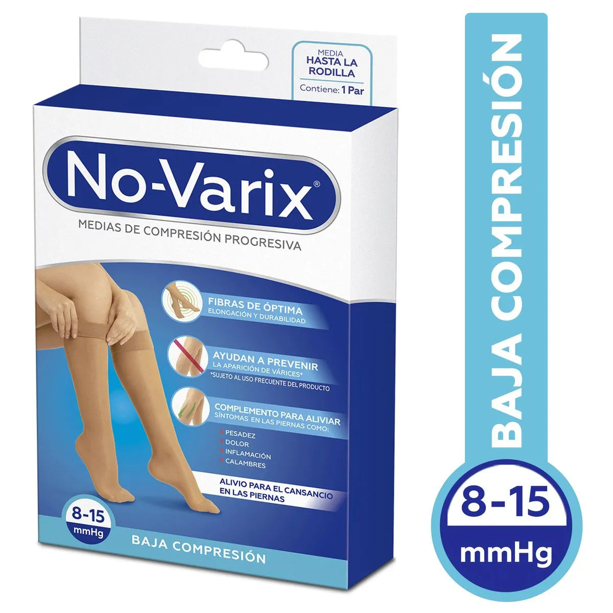 La media de compresión suave No-Varix para dama está diseñada para brindar un soporte ligero que mejora la circulación y alivia la sensación de piernas cansadas, especialmente en jornadas largas de pie o sentada. Su compresión de 8-15 mmHg la hace ideal para uso preventivo, embarazadas, personas sedentarias o quienes recién inician el uso de medias terapéuticas.