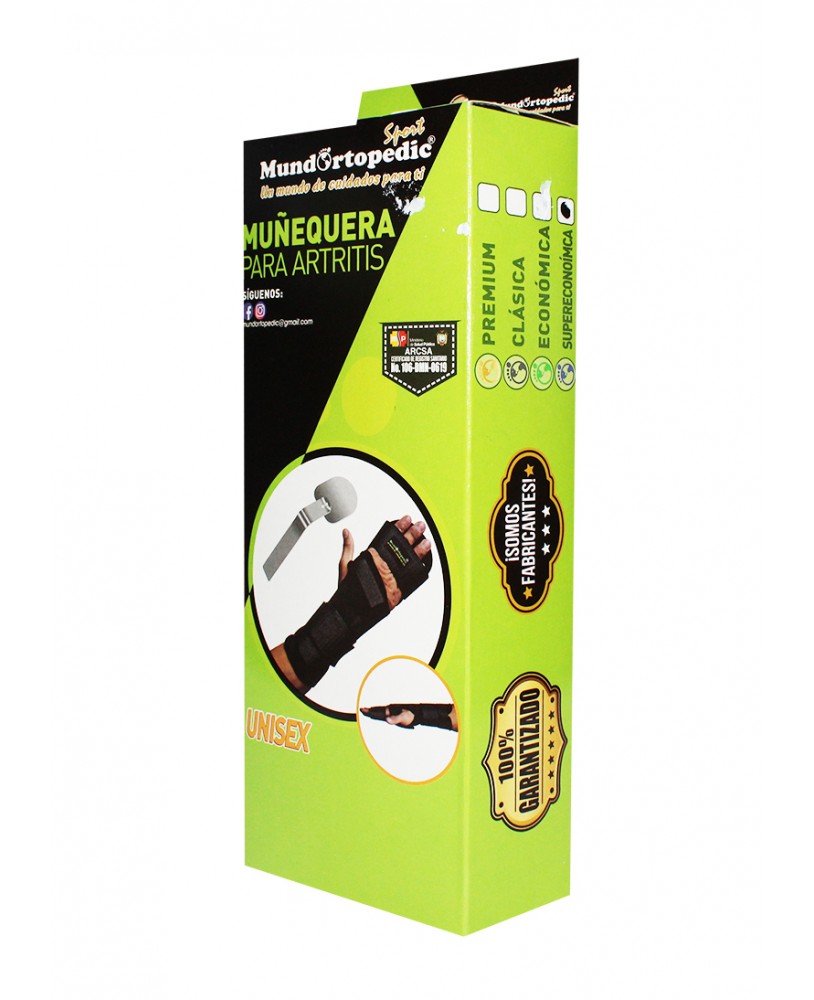 La muñequera para artritis sin pulgar de la marca Mundo Ortopedic es un soporte diseñado específicamente para brindar alivio y estabilidad en la zona de la muñeca, ideal para personas que sufren de artritis, tendinitis u otras afecciones que causan dolor e inflamación en la articulación. Al no incluir soporte para el pulgar, permite un rango de movimiento más libre en el dedo, concentrando el soporte en la muñeca y reduciendo la tensión en la zona afectada.