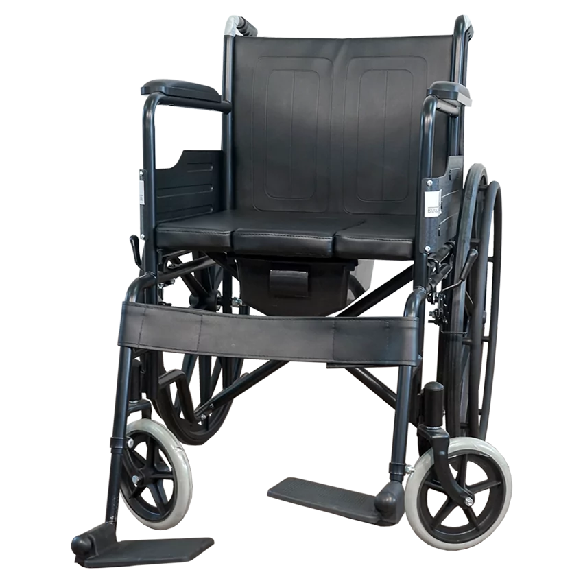 Esta silla es una solución práctica para personas que necesitan una silla de ruedas combinada con una opción de inodoro, reduciendo el esfuerzo tanto para los usuarios como para sus cuidadores.